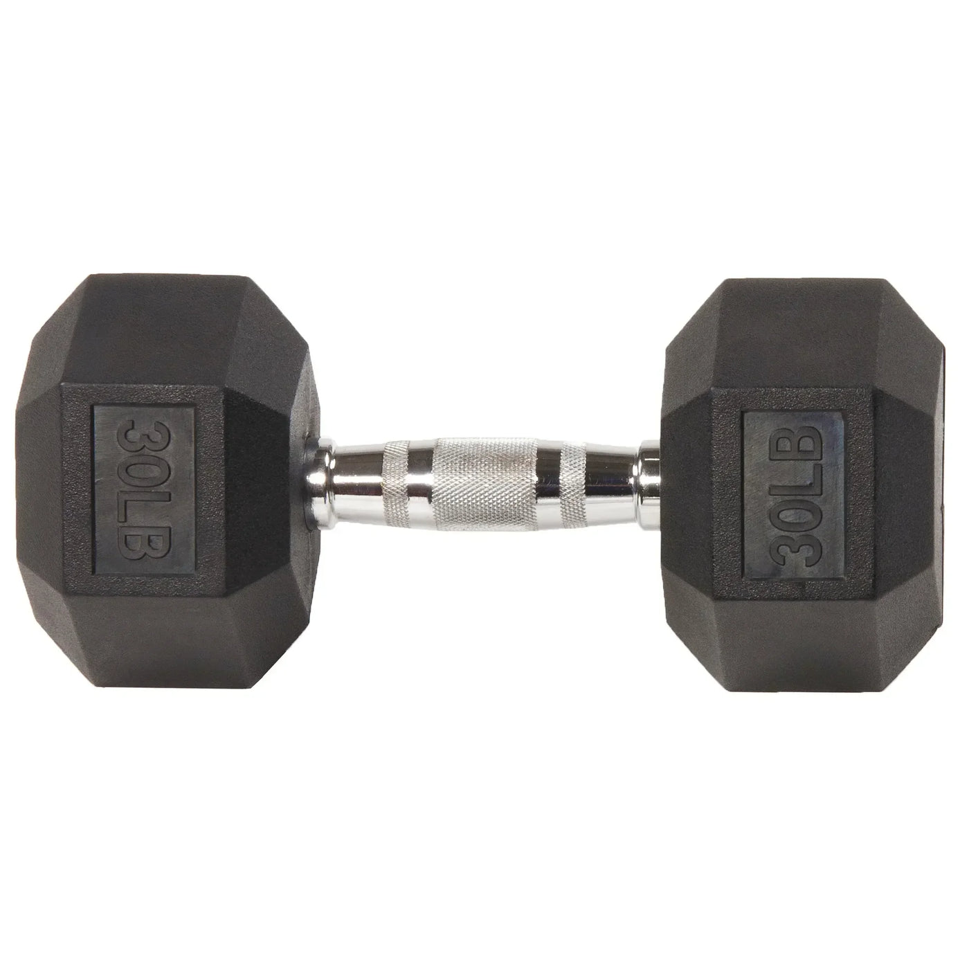 30lb Black Rubber Encased Hex Dumbbell Single, Anti-Roll Design for Home Gym Strength Training & Fitness